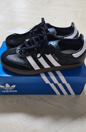 안녕하세요. 오늘은 요즘 가장 핫한 스니커즈 중 하나인 아디다스 쌈바 구입 후기를 써보려고 해요. 저희집 중학생 아이가 요즘 이 신발이 너무 예쁘다면서 사고 싶다고 하더라구요.안그래도 지금 신고 있는 스니커즈가 흰색이라 검정색으로 하나 더 사줘야겠다 생각하고 있던 차에잘 됐다 생각했어요.털털한 아이가 흰색 스니커즈를 신고 다니니 관리해줘야 하는 제가 너무 힘들더라구요. 박스를 열자마자 좋아하는 아이의 모습이..^^제가 보기에는 그냥 평범한 아디다스 스니커즈인데 이게 뭐라고 이렇게 갖고싶은건가 했는데요즘 이 스니커즈가 유행인가 보더라구요.블랙 가죽 바탕에 화이트 삼선브라운 고무 아웃솔빈티지하면서도 세련된 무드클래식하면서도 깔끔하고 예쁘네요.스커트, 슬랙스, 청바지, 교복.. 어느 의상에도 잘 어울릴듯한..